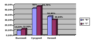 Для проведения экспериментальной работы были выбраны два класса: 6 «В» и 6 «Г» по 24 человека в каждом. 6 «В» был контрольным, а 6 «Г» – экспериментальным классом.