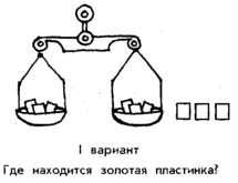 Можно ли найти золотую пластинку двумя взвешиваниями на чашечных весах?