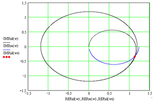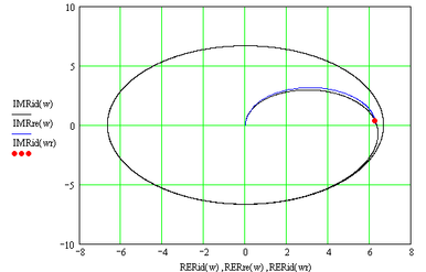 и выделив мнимую и реальную части построим годограф идеального компенсатора RK(ω), который изображен на рис. 9. И найдем: