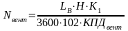 Рассчитаем мощность электродвигателя для данного вентилятора