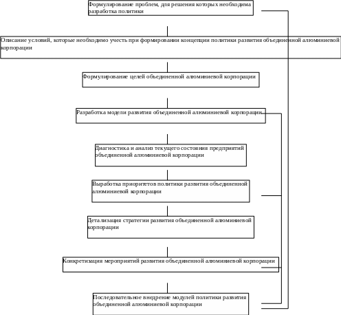 Алгоритм последовательности действий при разработке политики развития объединенной алюминиевой корпорации мы приводим на рис.2.1