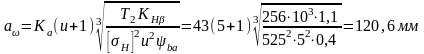 Межосевое расстояние из условия контактной выносливости активной поверхности зубьев (по формуле (3.8) [1]).