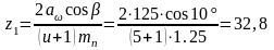 . Определим число зубьев шестерни и колеса: