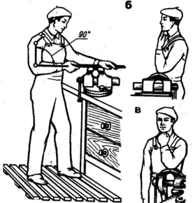 Рис.1--Положения работающего относительно тисков при опиливании: