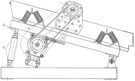 Короб, установленный наклонно, колеблется под действием центробежной силы, возникающей от вращения, дебалансного вала инерционного вибратора.
