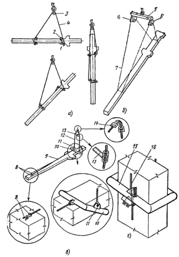 в, г - приспособлениями для монтажа колонн; 1, 2, 8, 14 - скобы,