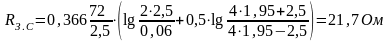 Расчетное сопротивление заземления трубы, верхний конец которой заглублен в землю определяется по [2, с.146]