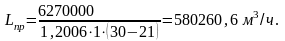 Объём приточного воздуха Lnp, необходимого для ассимиляции приточных тепловыделений определяется по формуле: