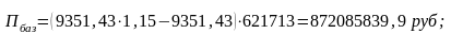 ЧПбаз = 872085839,9 – 277283,9 +174361711,2 = 697446844,8 руб.