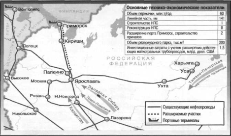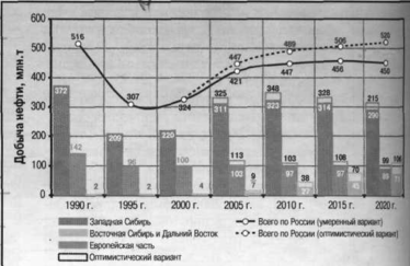 Основным нефтедобывающим районом России рассматриваемую перспективу останется Западная Сибирь (рис. 4), хотя ее доля в общей добыче нефти к 2020 г. и снизится до 58–55 против 68% в настоящее время. Для удержания российских позиций на европейском нефтяном рынке и обеспечения роста экспорта российской нефти на рынки стран АТР и США энергетическая стратегия предусматривает реализацию нескольких масштабных инфраструктурных проектов, один из которых: