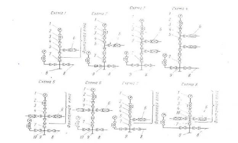 Арматура для двухрядного подъемника отличается от описанной лишь тем, что к этой схеме добавляется тройник с задвижкой на боковом отводе, который устанавливают на верхний фланец крестовика. Тогда катушку устанавливают на добавляемый к схеме тройник.