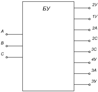 Силова частина схеми складається з групи тиристорів VS1... VS4, включених зустрічно-паралельно у фази А і С. Між фазами А і У включений короткозамикаючий тиристор VS5. Схема складається з силового ланцюга (рис.1.4, а), ланцюги управління (рис.1.4, би) і блоку управління тиристорами - БУ (рис.1.4, в).