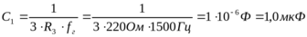 Виберемо опір резистора R3=220 Ом, і розрахуємо ємкість конденсатора C1