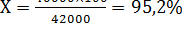 40000 – Х% Х = (40000*100)/42000 = 95,2%