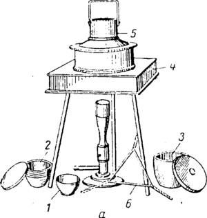 Испытание на коксообразование имеет целью в данном случае выявить способность композиционного топлива отлагать углистый нагар. Широкое распространение получил прибор, предложенный Конрадсоном и принятый в качестве стандартного почти во всех странах. Устройство прибора рассмотрено на рисунке 5.