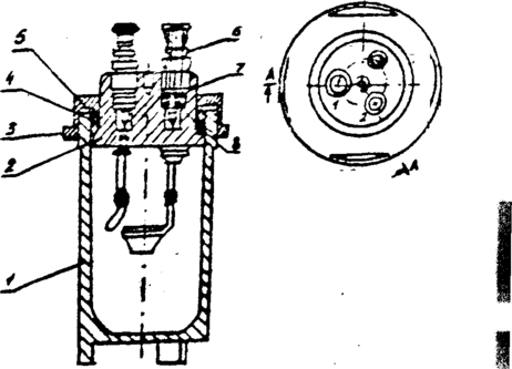 1— корпус; 2 — крышка; 3 — гайка накидная; 4 — прокладка; 5 — кольцо металлическое; 5 — гайка; 7— шайба; 8 — прокладка.