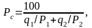 где g1, g2 — удельный вес сырья соответственно 1 и 2 сортов в общем его объеме, %;
