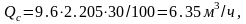 где Qс — объем перерабатываемого сырья, м3/ч.