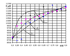 Рисунок 3.20 б. Зависимость усилия пресса от диаметра D заготовки и от отношения толщины к высоте S/H при