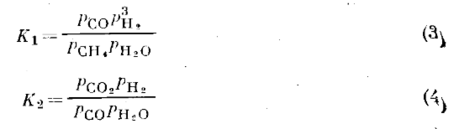 където PCO, PH2, PCO2, PH2O, PCH4 – парциалните налягания на съответстващите компоненти в равновесната смес.