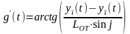где y' – условная вертикальная координата точки пересечения прямой DE и плоскости, перпендикулярной оси OX и проходящей через точку А; y' – приращение вертикальной координаты точки y', обусловленное перекосом автогрейдера вокруг оси OX на угол :