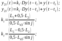 где yП, yЛ – вертикальные координаты правой и левой крайних точек режущей кромки отвала в момент времени t; LОТ – ширина отвала автогрейдера.