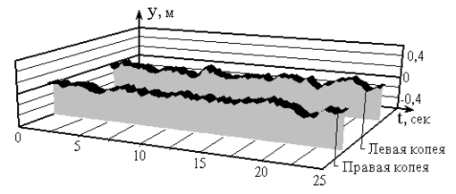 Рис. 3.3. Фрагмент реализации микрорельефа по правой колее
