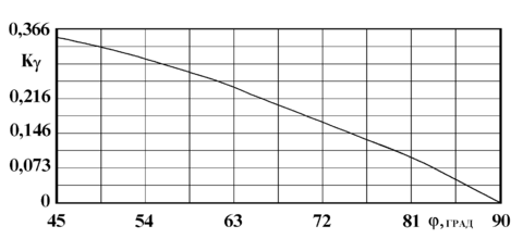 Рис. 4.21. Зависимость планирующих свойств автогрейдера, определяемых коэффициентом KY, от угла захвата