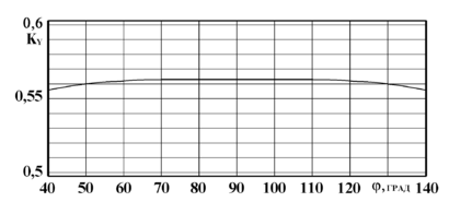 В работе было также проанализировано влияние угла захвата на коэффициент KY. На рис. 4.21 представлена зависимость коэффициента KY от угла захвата .