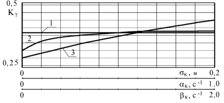 Рис. 4.19. Зависимости K от параметров корреляционных функций микропрофиля: 1 – то к; 2 – от к; 3 – от к.
