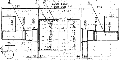 1 - чугунная бочка, 2 - стальные полуоси, 3 - рабочий слой из легированного чугуна