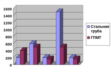 Рис. 30. Сравнительные экономические показатели использования стальных труб и ГПМТ