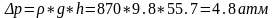 плотность перекачиваемой нефти ρ = 870 кг/м3;