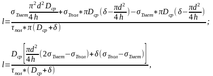 Расчет длины законцовки из условия равенства прочности тела трубы на разрыв и прочности точечной сварки проволок между собой.