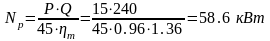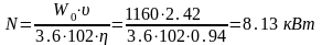 Мощность, затрачиваемая на работу рабочим оборудованием: