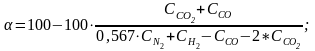 Рассчитаем состав выхлопных газов в объемных долях и определим степень конверсии метанола в формальдегид по составу, пользуясь формулой: