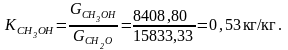 где, 25302,74 кг/ч, 4591,67 кг/ч и 8417,22 кг/ч расход спирто-воздушной смеси, метанола - ректификата и «свежего» метанола, соответственно.