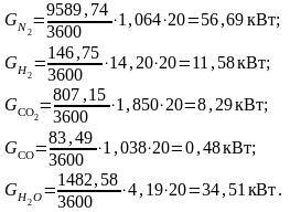 а) количество тепла, уходящее с выхлопными газами, при 20°С: