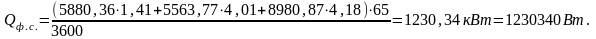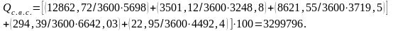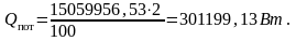 Qпот = 3299796 + 24825119,69 – 26505323 = 1619592,69 Вт;