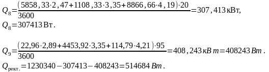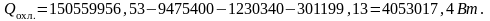 Qохл = 26505323 – 5416347,534 = 21088975,47 Вт.