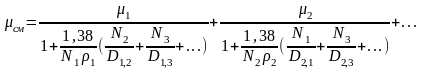 Коэффициенты диффузии DАсм для газа А, диффундирующего через смесь газов (В + С), вычисляем по формуле: