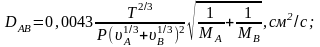 Коэффициенты диффузии находим последующим соотношениям, определяемым общими закономерностями диффузии газов. Для диффузии газа А в газ В.