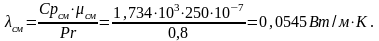 Наибольший процент в смеси составляют многоатомные газы. Принимаем приблизительное значение Pr для смесей такое же, как для трехатомных газов, Pr = 0,8 [ 2, с. 187].