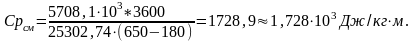 где, Q – количество теплоты, отданное контактными газами при охлаждении от 650оС до 180оС.