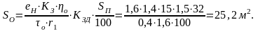 где, S0 – суммарная площадь световых проемов окон (3 м 2,5 м = 7,5 м2); Sп – площадь пола помещения (8 м 4 м = 32 м2); ен – нормированное значение КЕО (1,6); Кз – коэффициент запаса (Кз = 1,2 – 2,0); η0 – световые характеристики окна (23); τ0 – общий коэффициент светопропускания (0,4); r1 – коэффициент, учитывающий отражение света при боковом и верхнем освещении (1,6); Кзд – коэффициент, учитывающий затемнение окон противостоящими зданиями, (Кзд =1 – 1,7).