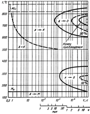 Рисунок 1.2 – Диаграмма изотермического распада переохлажденного аустенита стали Р6М5.