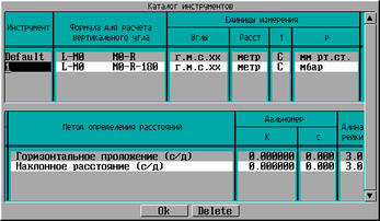 В функции " ОБЪЕКТ/Инструменты " уточняется тип используемого прибора. Необходимо обратить внимание на метод расчёта вертикального угла и метод определения расстояния (рисунок 3.10.).