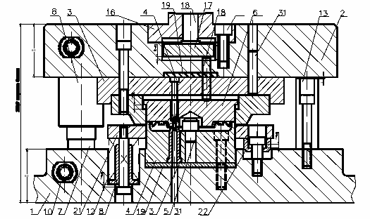 Комбинированный штамп совмещенного действия для первой операции представлен на рис.3.1.