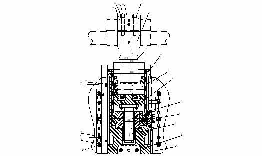 Конструкция пресса ЗИЛ 80, при всех своих преимуществах, обладает рядом существенных недостатков. Основным недостатком является расположение муфты-тормоза не на главном валу, что способствует значительным потерям энергии на проскальзывание дисков при работе пресса в режиме единичных ходов. К другим недостаткам можно отнести отсутствие таких современных частных вспомогательных устройств, как механическая регулировка закрытой высоты, устройств для предохранения пресса от перегрузок и вывода из распора, средств быстрого крепления штампов. В дипломном проекте предлагается разработка конструкции регулировки закрытой высоты с механическим приводом, которая может быть встроена в ползун пресса ЗИЛ 80 путем незначительной механической доработки ползуна и станины пресса. Конструкция механизма регулировки представлена на рис.3.8.