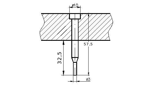Наиболее нагруженными пуансонами во всех штампах являются пуансоны для пробивки отверстий диаметром 3 мм, которые и подвергнем прочностным расчетам по рекомендациям /2/. Чертеж пуансона представлен на рис. 3.6.